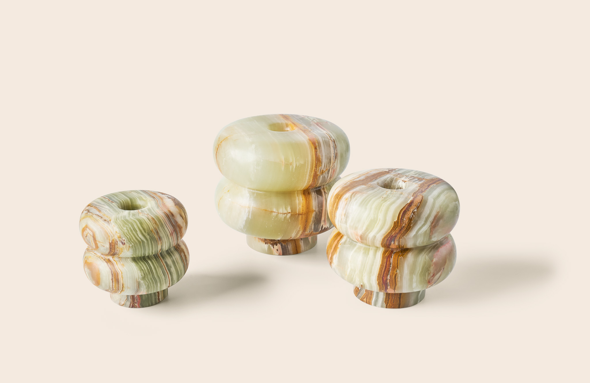 Sourced from South America and the Middle East, our onyx is carefully selected  and extacted by small, dedicated teams. We search for exceptional quality and rare character. Onyx is known for its unique veining, depth, and soft translucency, qualities that make every piece one of a kind and truly timeless. To preserve its beauty, every object is finished with a protective wax, a technique also used in museums.