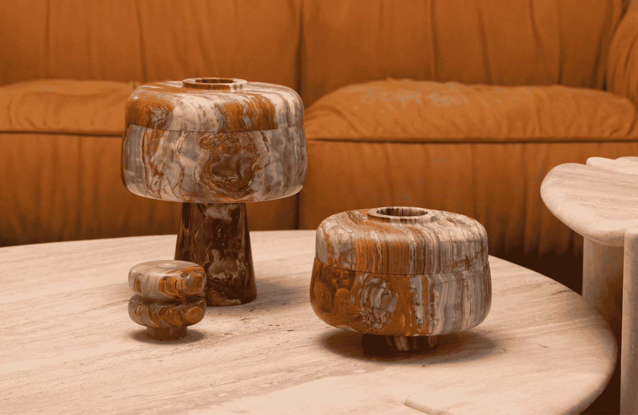 Sourced from South America and the Middle East, our onyx is carefully selected  and extacted by small, dedicated teams. We search for exceptional quality and rare character. Onyx is known for its unique veining, depth, and soft translucency, qualities that make every piece one of a kind and truly timeless. To preserve its beauty, every object is finished with a protective wax, a technique also used in museums.