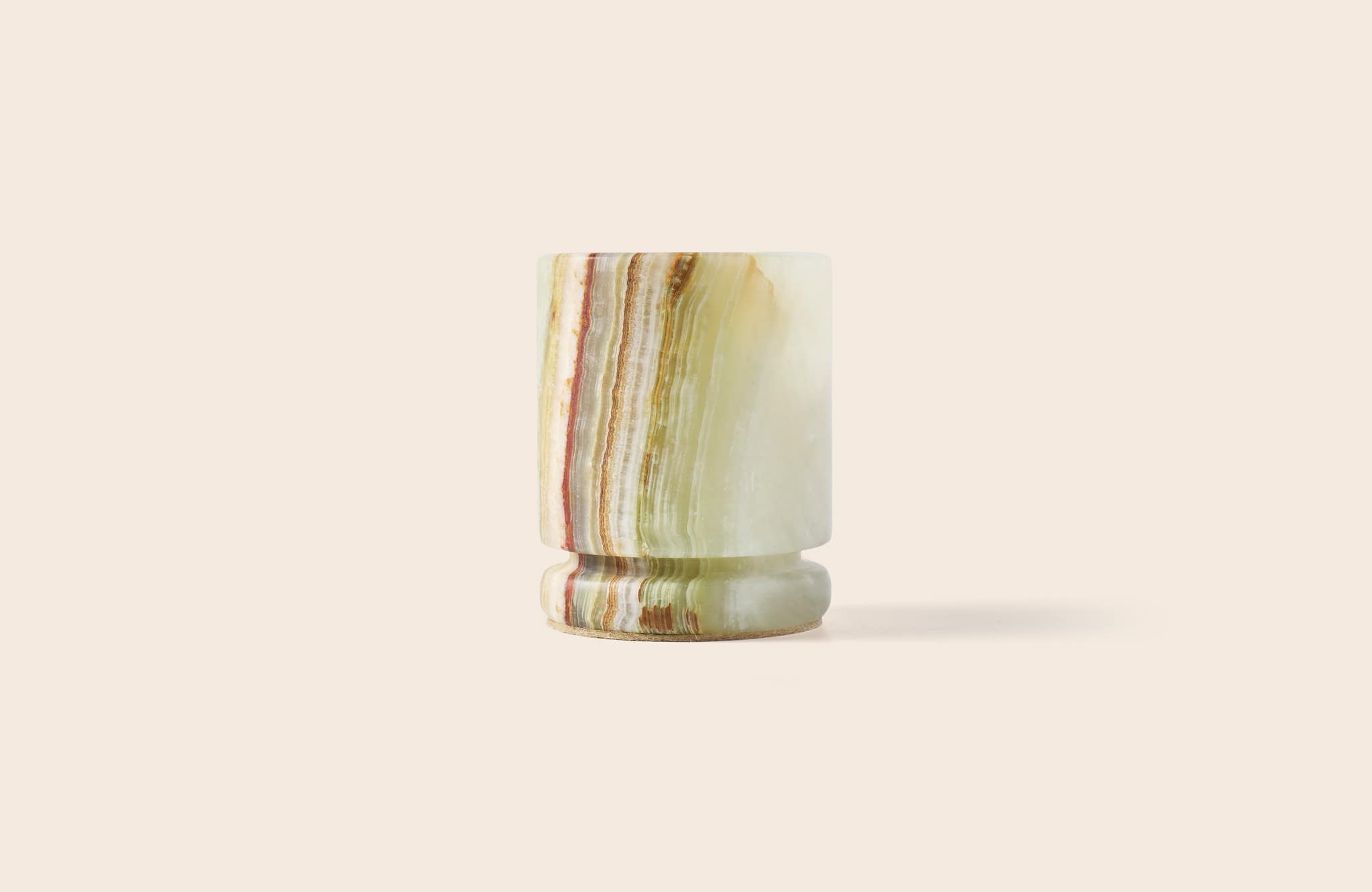 Our onyx is sourced from South America and the Middle East. We search for exceptional quality and rare character. Onyx is known for its unique veining, depth, and soft translucency, qualities that make every piece one of a kind and truly timeless. To preserve its beauty, every object is finished with a technique that is also used in museums.